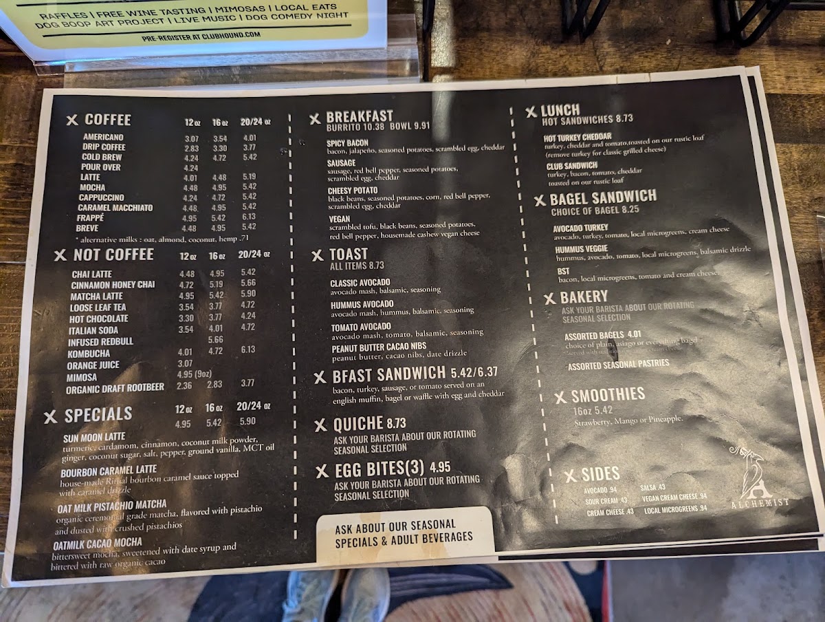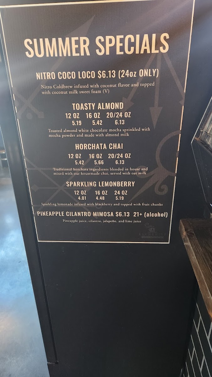 Introducing the menu at Alchemist Coffee 27th St., visitors can expect a delightful fusion of creativity and flavor. Nestled in Boise, this café's offerings are diverse, highlighting unique drinks like the Sun Moon Latte and the Oat Milk Pistachio Matcha. The menu boasts an array of coffee-based drinks, including classic brews like Drip and Cold Brew, alongside milk-based delights such as Cappuccino and Latte. Specials like the Fireside Mocha and Alchemist Root Beer Float promise something extraordinary for every palate.
